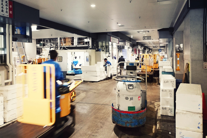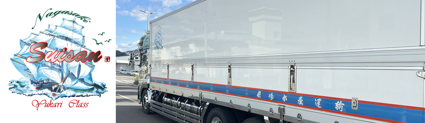 「長崎水産運輸」は、長崎魚市に拠点を置き、その日に水揚げされた鮮魚や長崎県の水産加工品を主に運ぶ運送業者です。オゾン殺菌や低温管理で保たれたトラックへ積み込み、全線高速を経て豊洲市場へ。