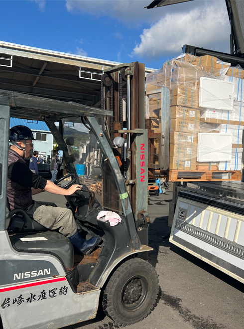 それらの新鮮な魚をトラックに積み込み、長崎魚市を出発。